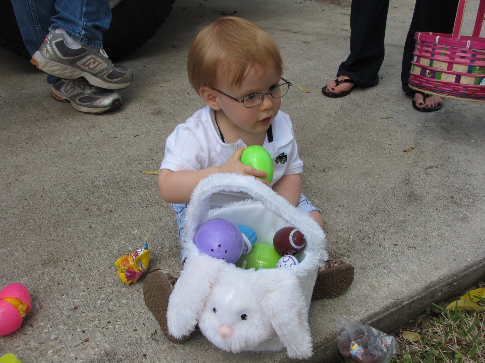 Easter morning at Grandaddy and Granmomma's, before church Cannon got to check out his Easter basket full of goodies. He had two and they were both soooo full. He's not spoiled though, ;)